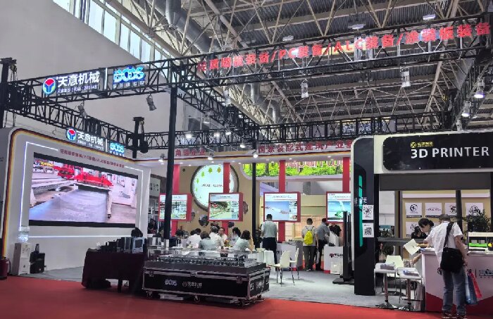 天意機械的展位位于E1展廳C02,整個展區設計獨特,展示了公司裝配式建筑技術的先進性和創新性。在展區中,天意機械展示了其自主研發的裝配式建筑成套裝備,包括輕質墻板智能裝備、PC智能裝備、蒸壓加氣混凝土(ALC)板材智能裝備以及保溫裝飾一體化板智能裝備等。這些裝備不僅具有高效、環保、節能的特點,而且能夠實現自動化、智能化生產,大大提高了裝配式建筑的生產效率和質量。